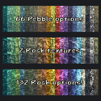 Simple pebble and rock terrain for Dungeondraft. Each texture comes in 66 shades (light, mid and dark across 22 hues), designed to blend naturally for a painterly look.